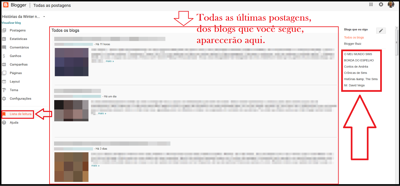“Comentários” (imagem acima), você pode ver, no seu blog, os comentários dos